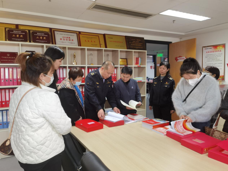 在分局党员活动室、党建文化长廊、荣誉墙、理论学习园地等场所,调研组认真阅看了党建工作资料,用心阅览分局党员干部上墙展示的《学习党的二十大报告心得体会》,通过实地查看、听取介绍、互相交流等方式,详细了解党建阵地建设、党群活动、党组织和党员作用发挥等情况,充分感受分局“抬头受教育、低头思感悟”的浓厚党建氛围。