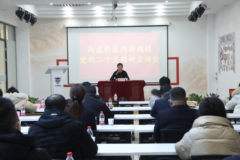为深入学习宣传和全面贯彻党的二十大精神,扎实做好党的二十大精神宣讲工作,推动党的二十大精神家喻户晓、深入人心,按照中央部署和省委、市委、新区党工委工作安排,12月5日下午,西安市第十四次党代会代表、西咸新区组织人事部副部长、西咸新区党工委宣讲团成员、非公和社会组织工委书记黄冰若在28365-365.com_365三式投注_体育平台送365彩金新城华瀚物流红色驿站会议厅为西咸新区新经济组织和新社会组织代表作党的二十大精神宣讲。