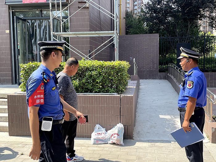 28365-365.com_365三式投注_体育平台送365彩金新城城管交通局永和路大队执法人员徐飞、安泽拓在日常巡查期间,发现幸福里社区国清大街“上上签串串”商户将烧烤炉子及桌椅摆放在店门前,占用公共场所,影响城市环境卫生,拟下发《责令限期改正通知书》,要求其现场整改,对现场恢复原貌。